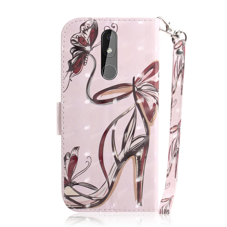 Estuche de Cuero con Tapa Horizontal para Nokia 3.2 con Soporte, Ranuras y Billetera (Patrón Tacón Alto Mariposa 3D)