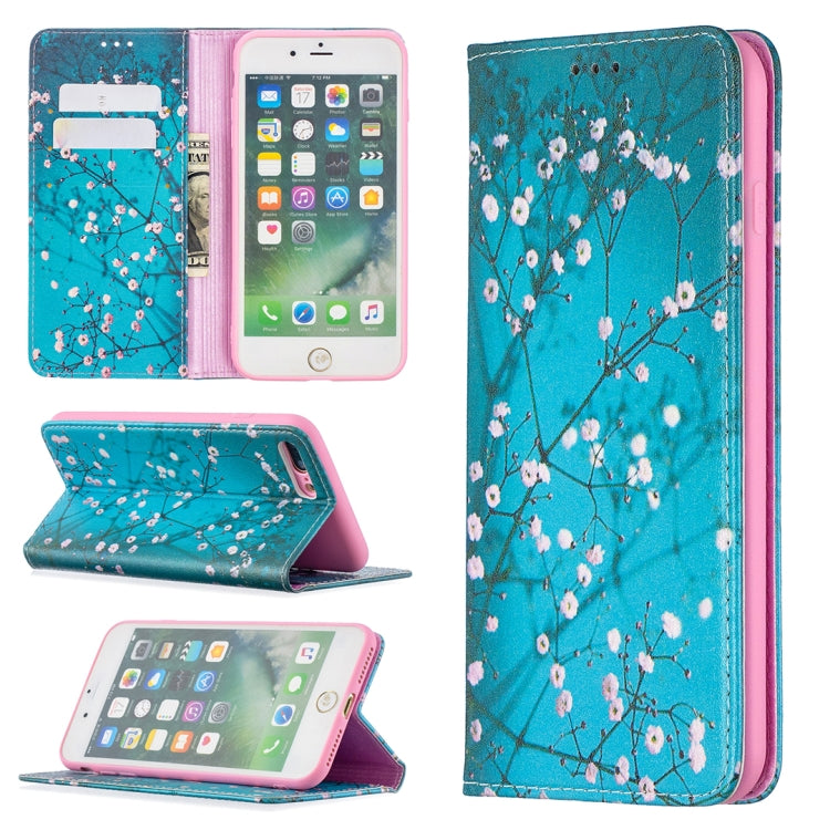 Estuche de Cuero de PU con Tapa Horizontal Magnética Invisible con Soporte y Ranuras para Tarjetas para iPhone 8 Plus y 7 Plus (Plum Blossom)