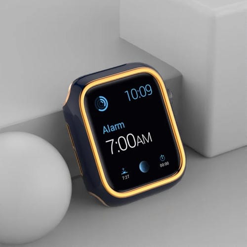Estuche de Reloj PC Galvanoplastia Dos Colores para Apple Watch Series 6 SE 5 4 44mm (Blue Rose Gold)