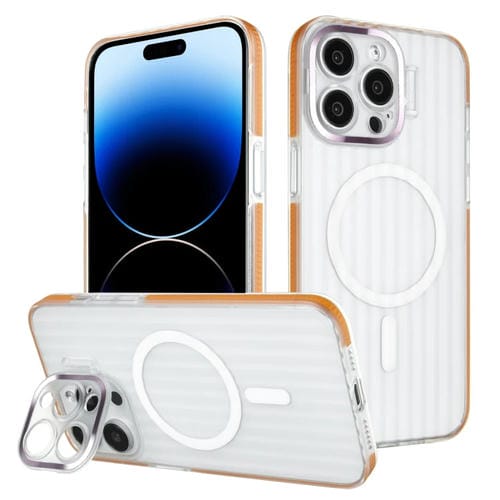 Estuche Magnético para Teléfono Magsafe con Soporte para Lente de Borde de Color para iPhone 14 Pro (Naranja)