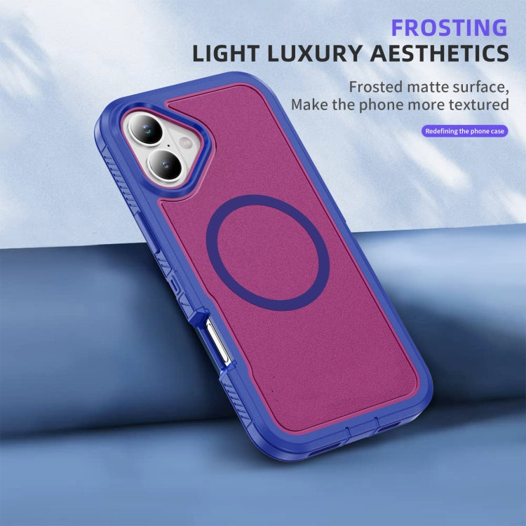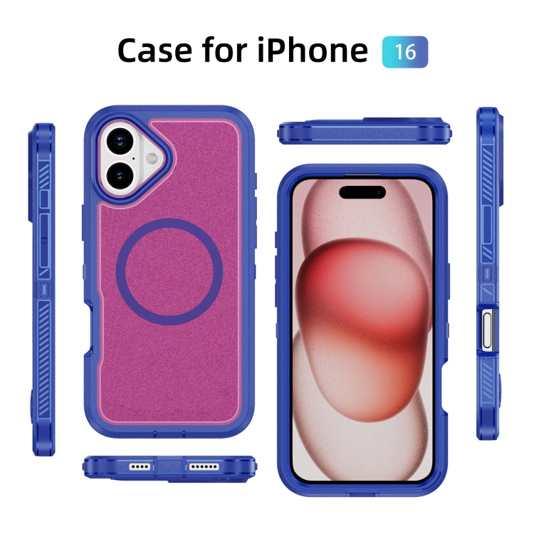 Estuche para Teléfono Magsafe Guard Anillo Magnético para iPhone 16 (Azul y Rojo Rosa)