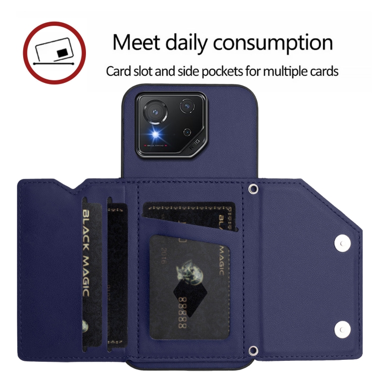 Estuche para Asus Rog Phone 8 con 4 Ranuras para Tarjetas y Correa para Muñeca (Azul)