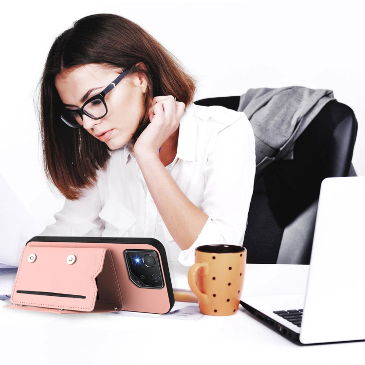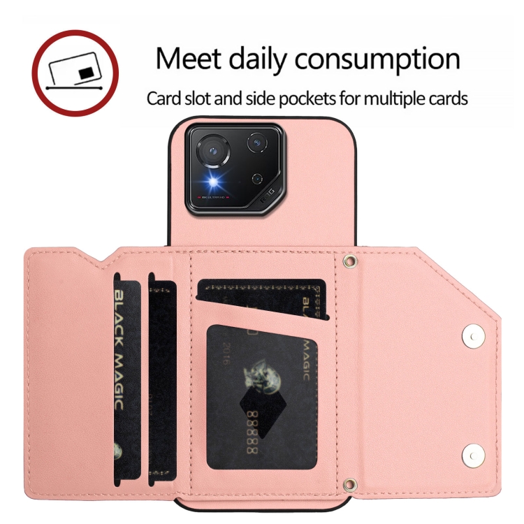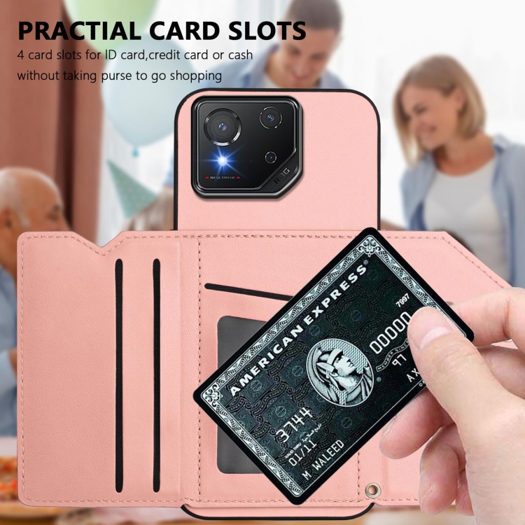 Estuche para Asus Rog Phone 8 Skin Feel con 4 Ranuras para Tarjetas y Correa para Muñeca (Rosa)