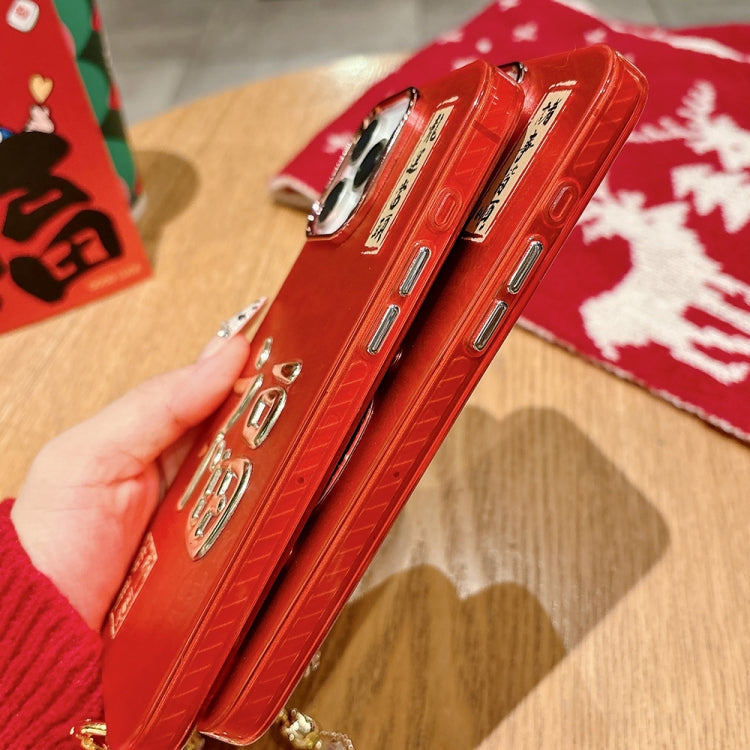 Estuche para Teléfono Get Rich iPhone 15 Pro Estampado Dorado 3D Imd con Cadena de Cristal