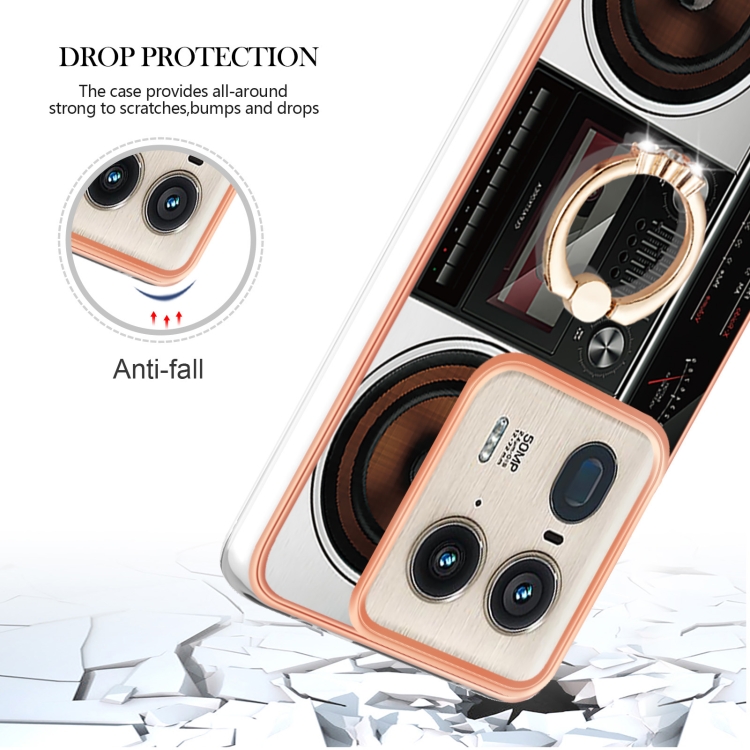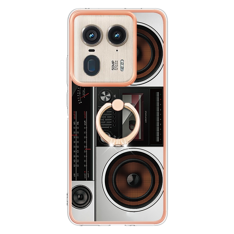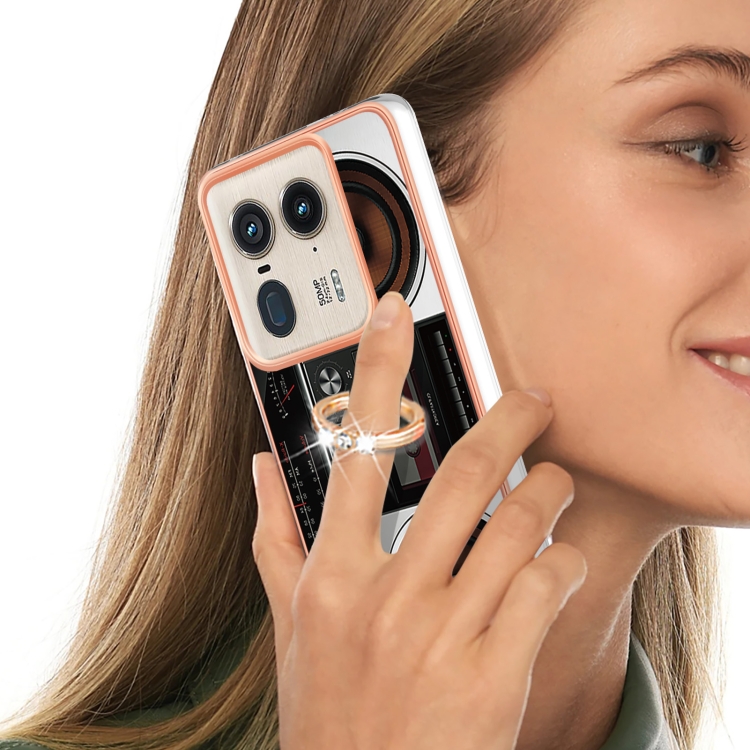 Estuche teléfono Motorola Edge 50 Ultra con Galvanoplastia Imd doble cara y soporte anillo (Radio Retro)