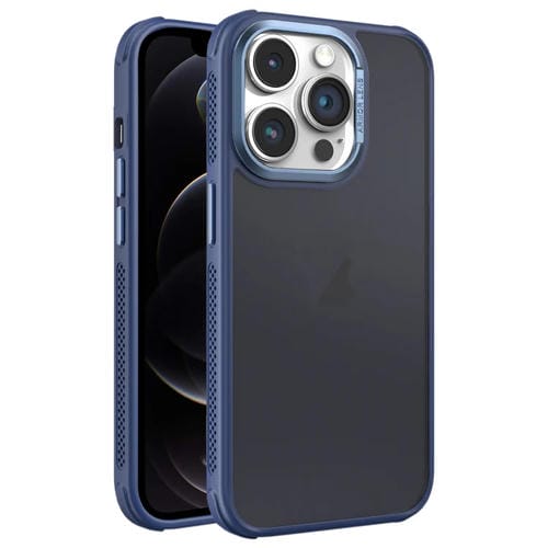 Estuche para Teléfono iPhone 12 Pro Marco de Lente Metal Esmerilado Sensación de Piel Enfriamiento Lateral (Azul)