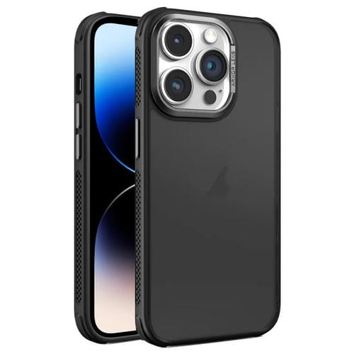 Estuche para Teléfono iPhone 14 Pro Max Marco Metal Esmerilado Piel Enfriamiento (Negro)