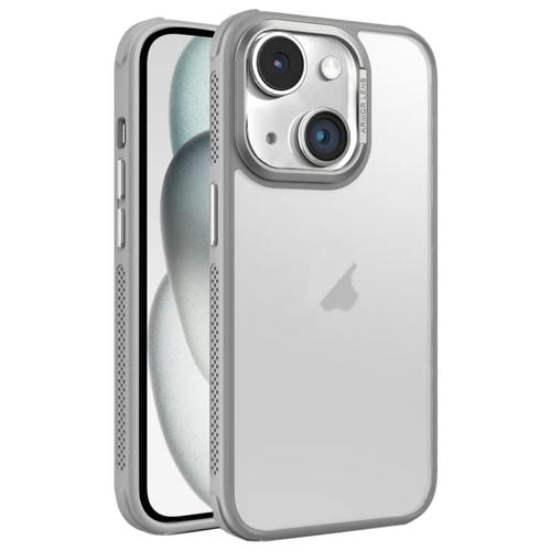 Estuche para Teléfono iPhone 15 Plus Marco de Lente Metal Esmerilado Sensación de Piel Enfriamiento Lateral (Gris)