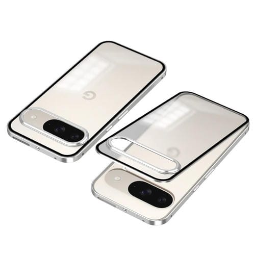 Estuche para Teléfono Google Pixel 9/9 Pro con Marco de Metal Esmerilado y Hebilla a Presión (Plateado)