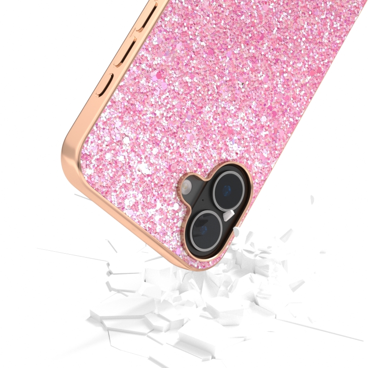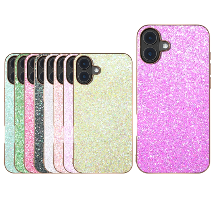 Estuche para Teléfono iPhone 16 Marco Galvanizado y Purpurina de Colores (Púrpura y Rosa)