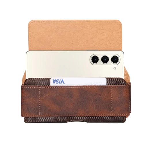 Estuche para Teléfono con Pliegue Colgante en la Cintura Textura Piel de Vaca (Marrón)