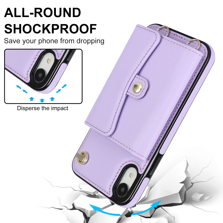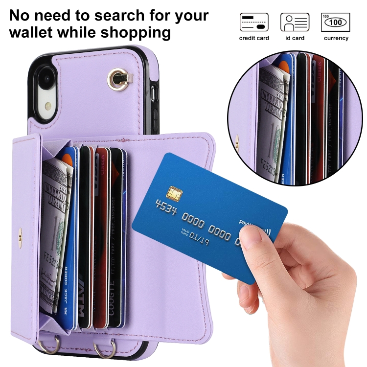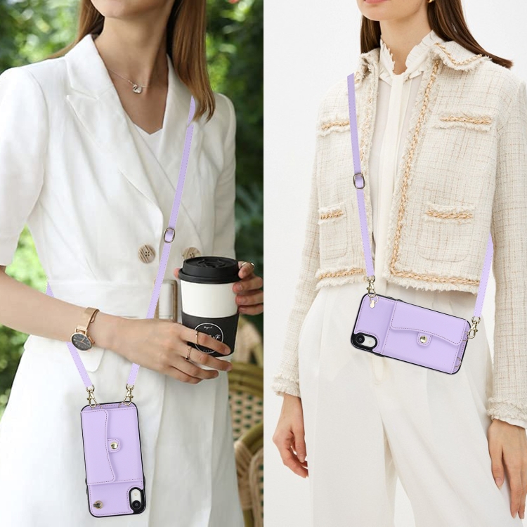 Estuche para Teléfono iPhone Xr con Ranura para Tarjeta Rfid y Cordón Largo (Púrpura)