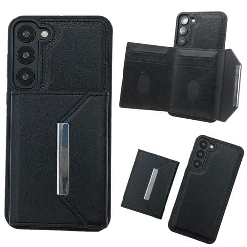 Estuche para Teléfono Samsung Galaxy S23 5G con Ranuras para Tarjetas y Hebilla de Metal (Negro)