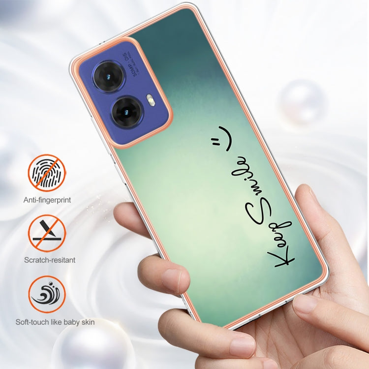 Estuche para Teléfono Motorola Moto G85 con Revestimiento Electrolítico de Mármol Doble Cara Imd (Sonrisa)