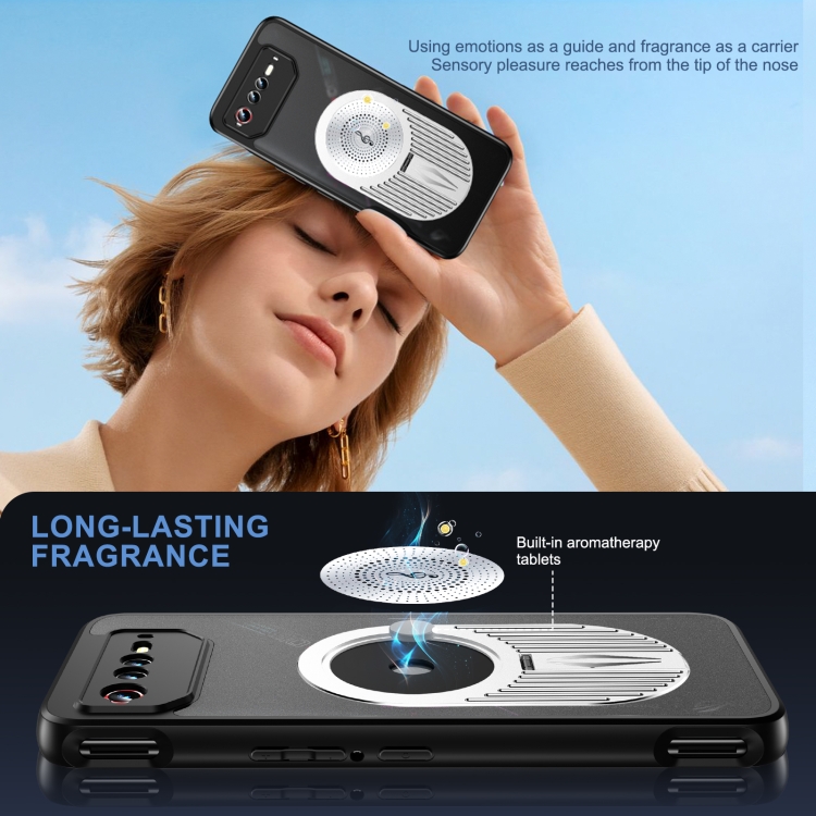Estuche para Asus Rog Phone 6/6 Pro/6D con Soporte Magsafe, Aromaterapia y Disipación de Calor (Plateado)
