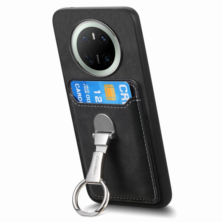 Estuche para Teléfono Huawei Mate 70 Magsafe con Soporte, Tarjetas y Anillo Plegable (Negro)