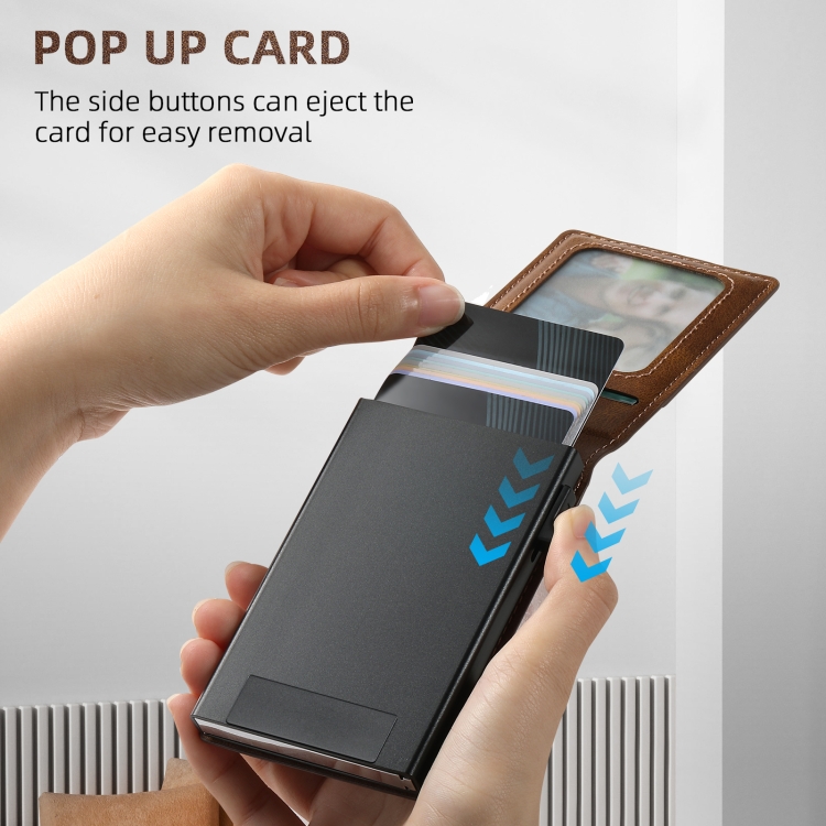 1. Material: cuero PU + TPU + PC + imán + caja de tarjeta de metal