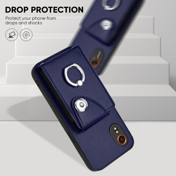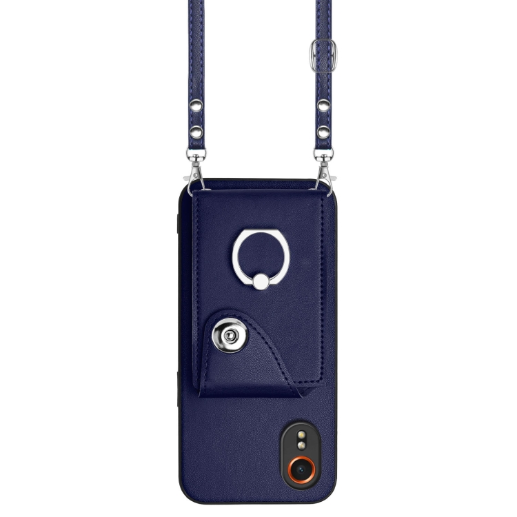 Estuche para Teléfono Samsung Galaxy Xcover7 con Tarjetero y Anilla con Cordón Largo (Azul)