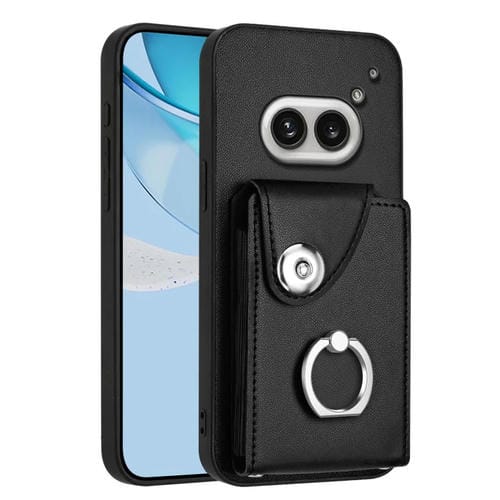 Estuche para teléfono For Nothing Phone 2A con tarjetero y anillo (Negro)
