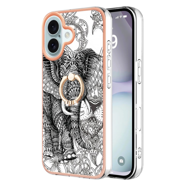 Estuche para Teléfono Imd Doble Cara con Galvanoplastia y Soporte Anillo para iPhone 16 (Elefante Tótem)
