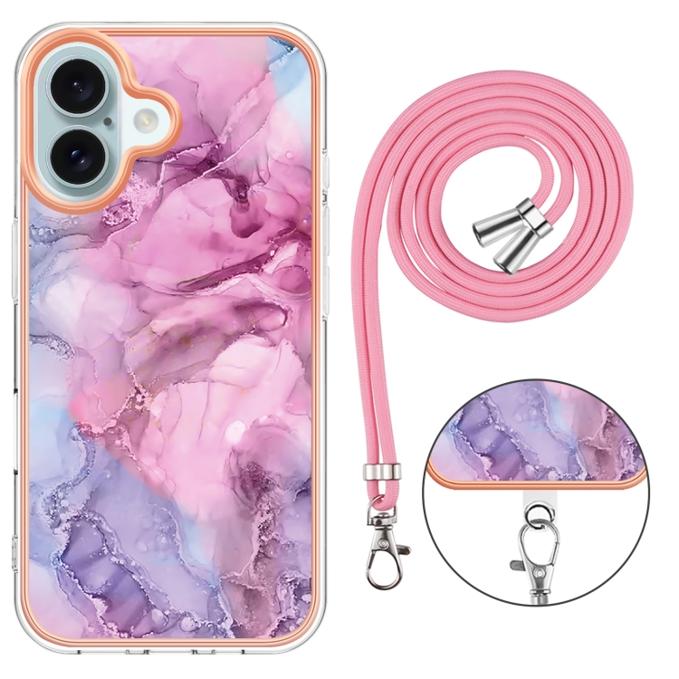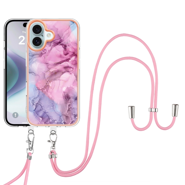 Estuche para Teléfono Imd Doble Cara Mármol Galvanizado iPhone 16 con Cordón (Rosa)