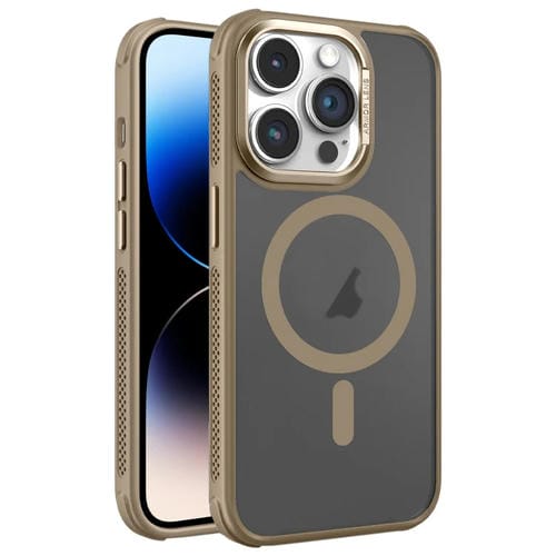 Estuche para Teléfono Magsafe con Marco de Lente de Metal Esmerilado y Sensación de Piel con Enfriamiento Lateral para iPhone 14 Pro Max (Dorado)