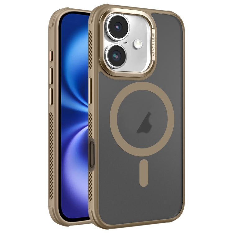Estuche para teléfono Magsafe iPhone 16 con marco de Lente de metal esmerilado y enfriamiento lateral (Dorado)