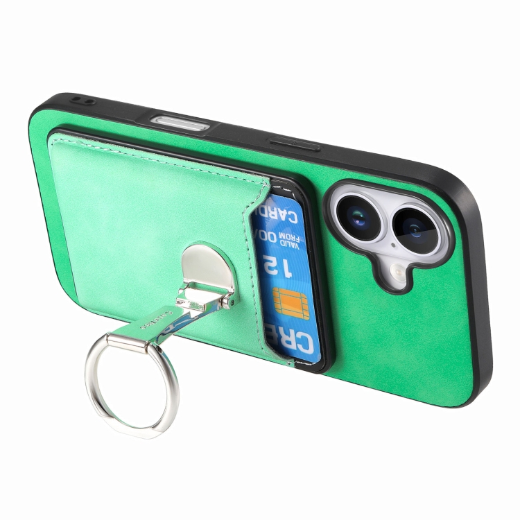 Funda Retro Plegable con Anillo y Tarjetero Magsafe para iPhone 16 (Verde)