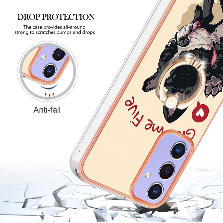 Estuche para Teléfono Samsung Galaxy A16 5G Galvanoplastia Doble Cara Imd Soporte Anillo (Perro de la Suerte)