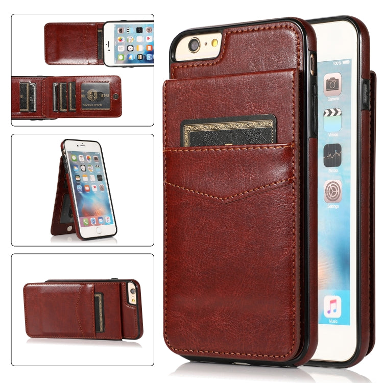 Estuche Protector PC + TPU para iPhone 6 con Soporte y Ranuras para Tarjetas (Marrón)