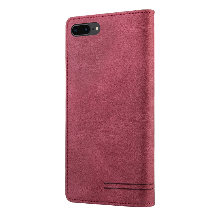 Cepillo Antirrobo con Soporte, Tragamonedas y Billetera para iPhone 8 Plus y 7 Plus (Rojo del Vino)