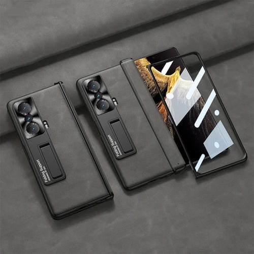 For Honor Magic VS GKK Leather Phone Case with Built-in Frosted Folding Hinge and Kickstand (Gray)
