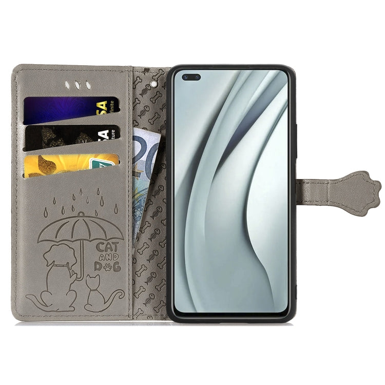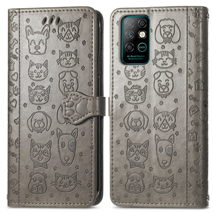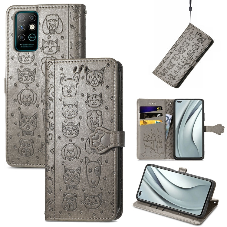Funda Cuero Horizontal para Infinix Note 8 con Estampado Gato y Perro, Soporte, Tragamonedas y Cordón (Gris)