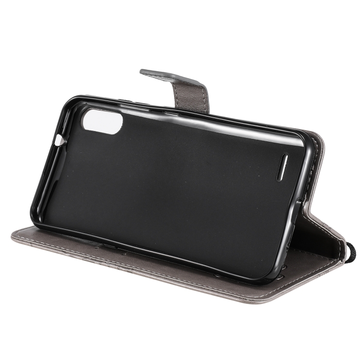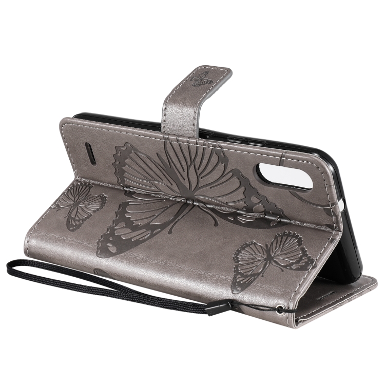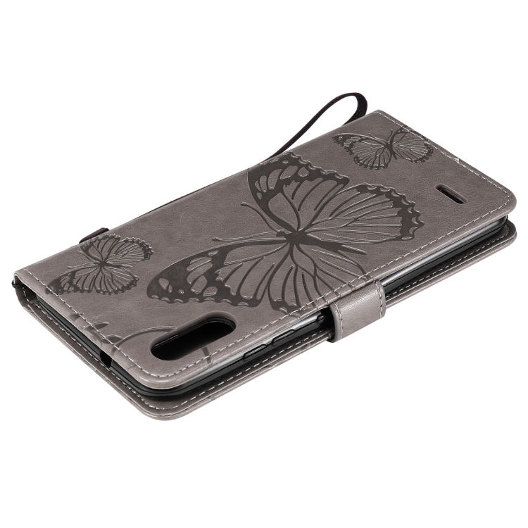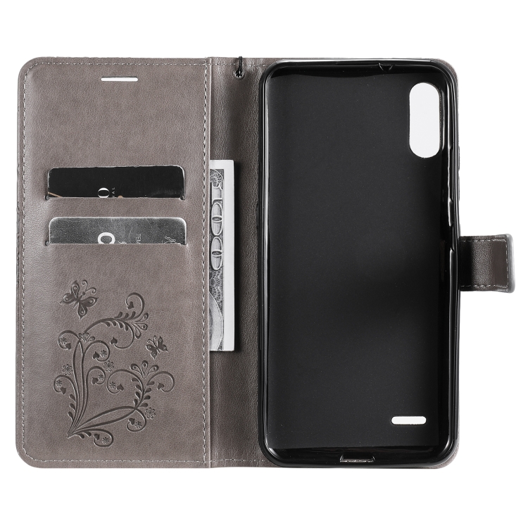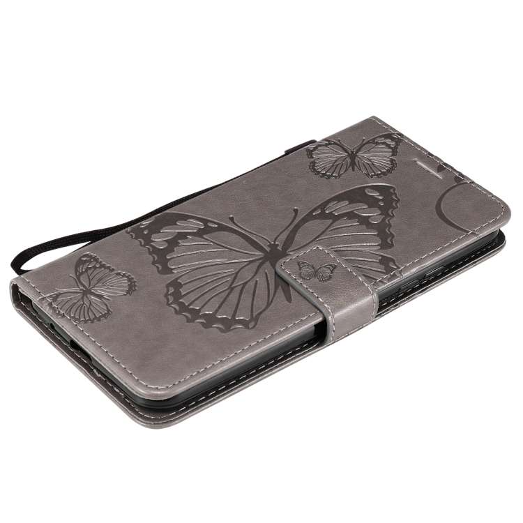 Funda de cuero horizontal para LG K22 / K22 Plus con patrón 3D de mariposas, tarjetero y billetera (Gris)
