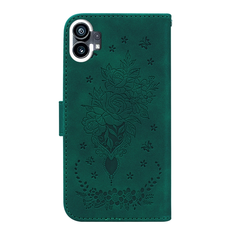 Estuche para Nothing Phone 1 de Cuero en Relieve con Mariposa y Rosa (Verde)