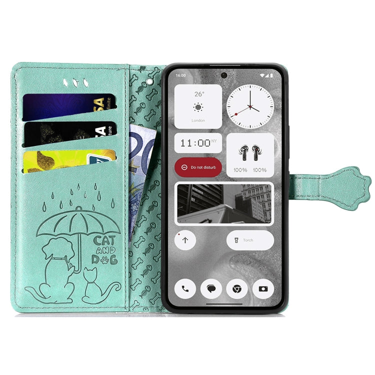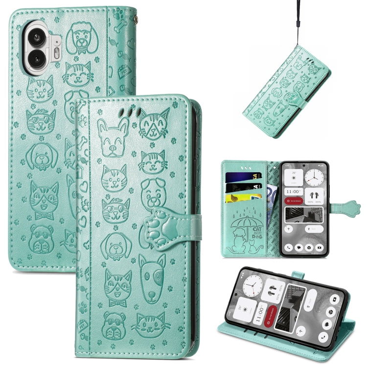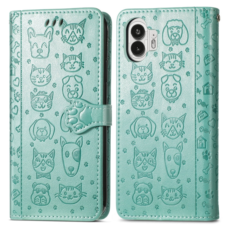 Estuche para For Nothing Phone 2 de Cuero con Relieve Perros y Gatos (Verde)
