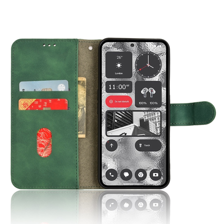 For Nothing Phone 2 Skin Feel Magnetic Flip Leather Phone Case Cover (Green)