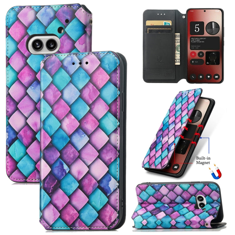 Estuche de Cuero Magnético Caseneo para Nothing Phone 2A (Escamas Moradas)