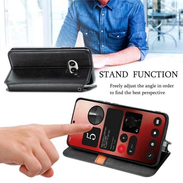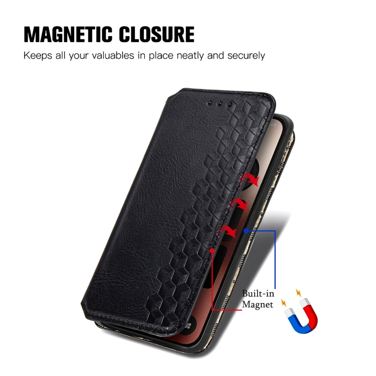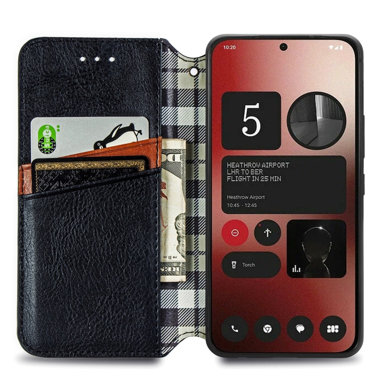 Estuche para Nothing Phone 2A Cuero Magnético Prensado con Rejilla Cúbica (Negro)