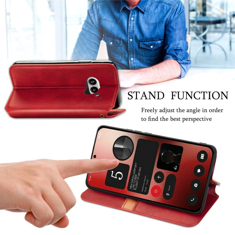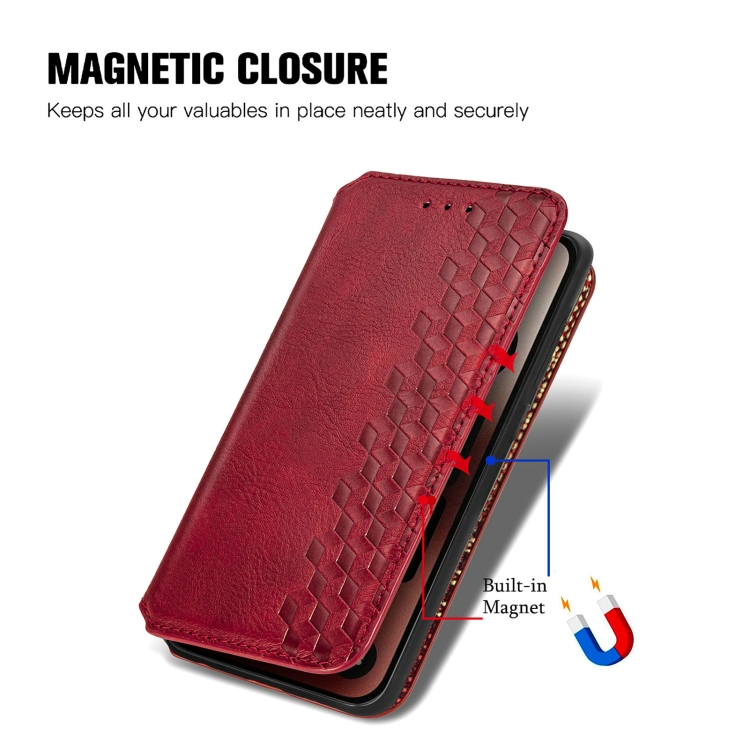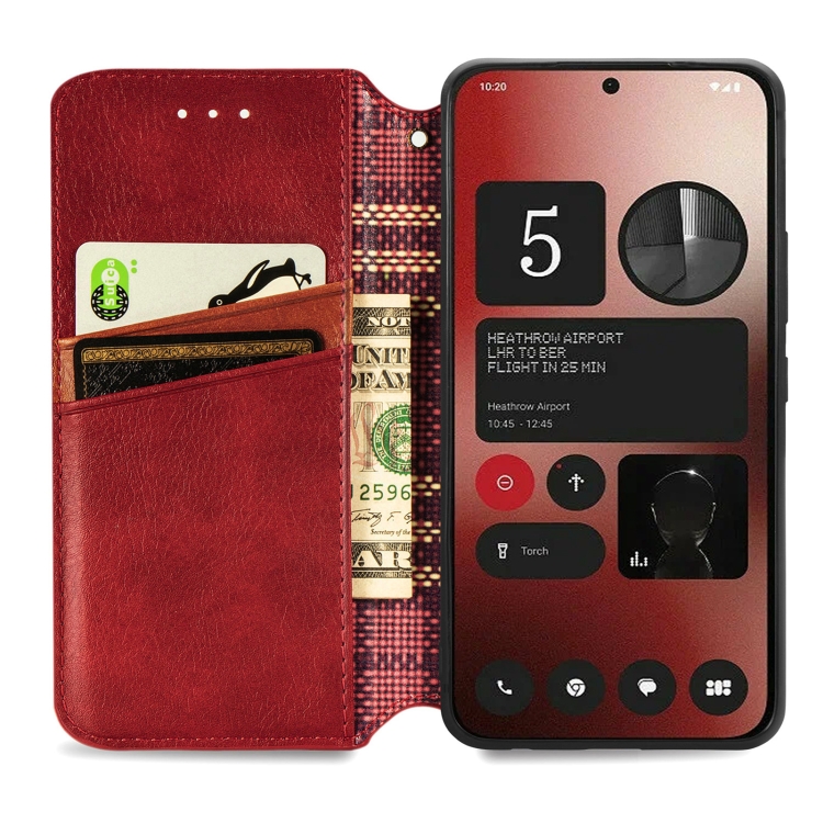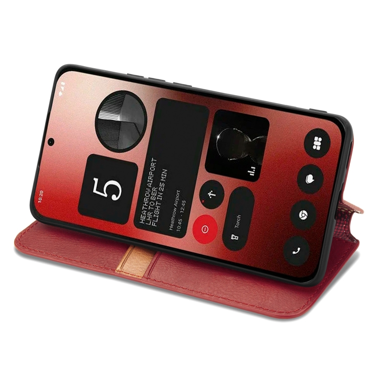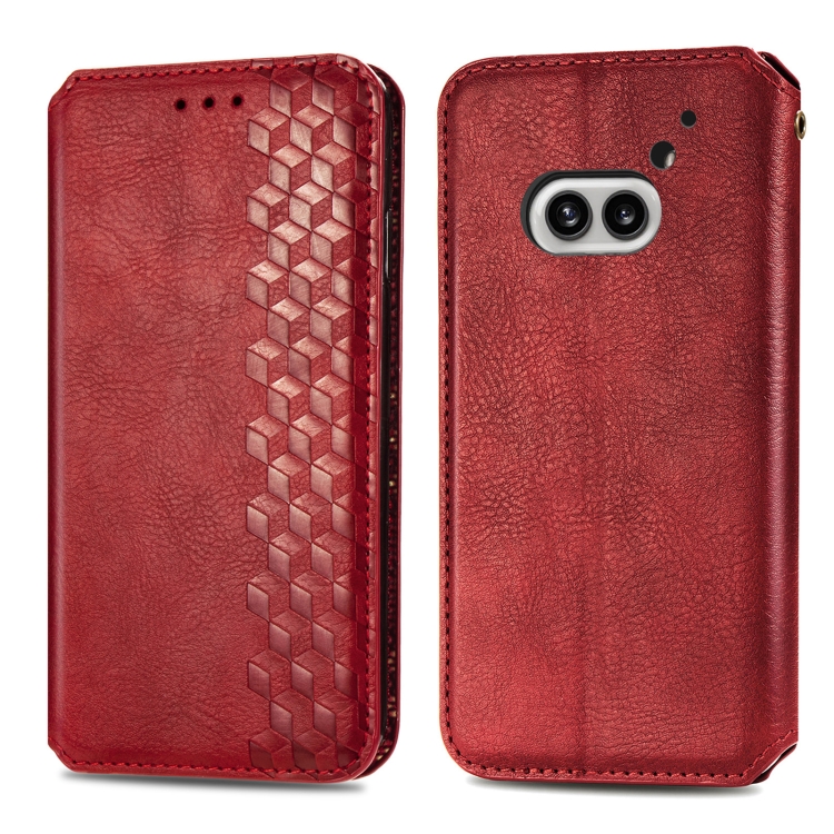 Estuche para Nothing Phone 2A Cuero Magnético Prensado Rejilla Cúbica (Rojo)
