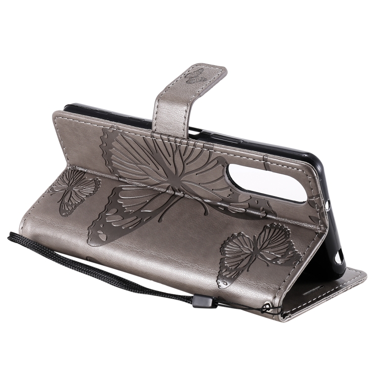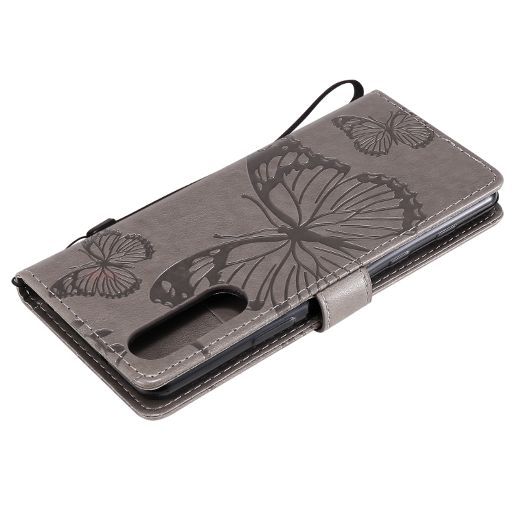 For Sony Xperia5 II 3D Butterflies Embossing Pattern Horizontal Flip Leather Case with Holder & Card Slot & Wallet(Grey)