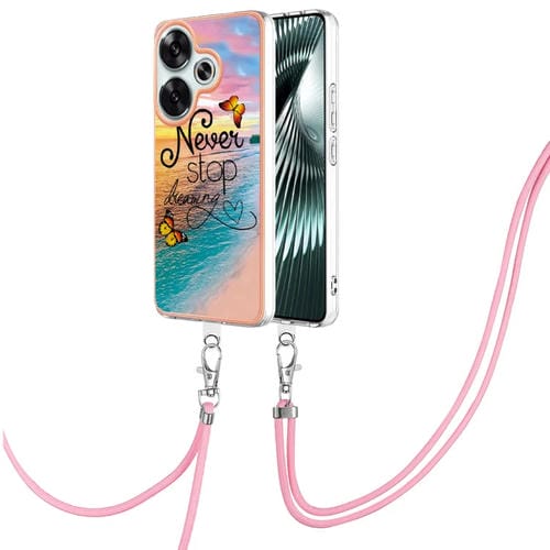 Funda a Prueba de Golpes con Patrón de Galvanoplastia Imd TPU para Xiaomi Poco F6 5G con Cordón para El Cuello (Mariposa Persiguiendo Sueños)