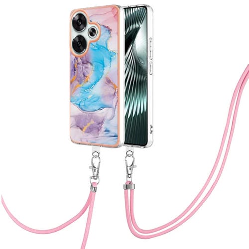 Funda a Prueba de Golpes con Patrón de Galvanoplastia Imd TPU para Xiaomi Poco F6 5G con Cordón para El Cuello (Mármol Azul Vía Láctea)