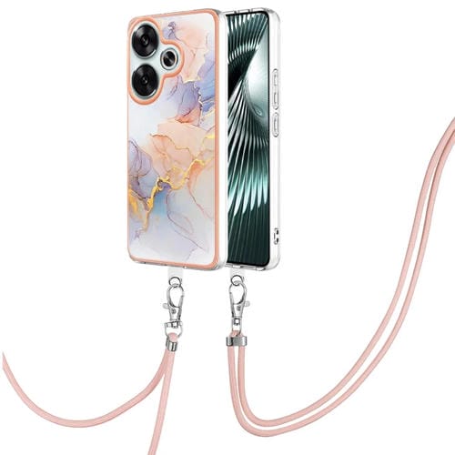 Funda a Prueba de Golpes con Patrón de Galvanoplastia Imd TPU para Xiaomi Poco F6 5G con Cordón para El Cuello (Mármol Blanco Vía Láctea)