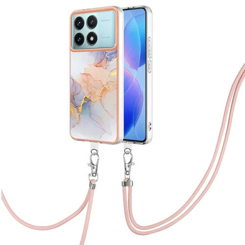 Funda a Prueba de Golpes con Patrón de Galvanoplastia Imd TPU para Xiaomi Poco F6 Pro 5G con Cordón para El Cuello (Mármol Blanco Vía Láctea)