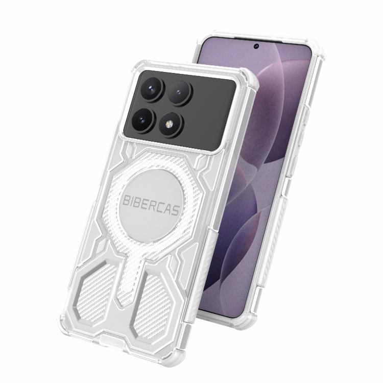 Funda BIBERCAS transparente con diseño de bolsa de aire MagSafe para Redmi K70 (blanca)