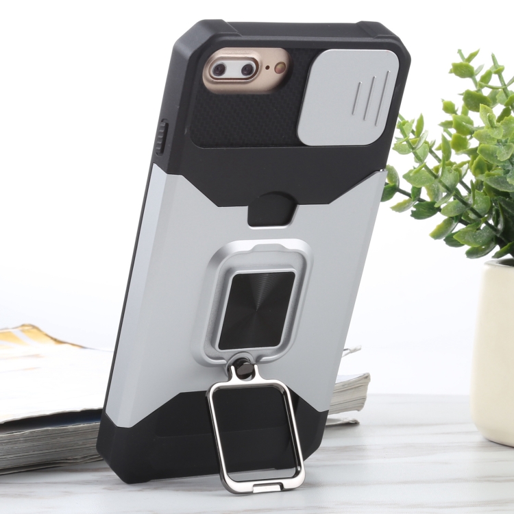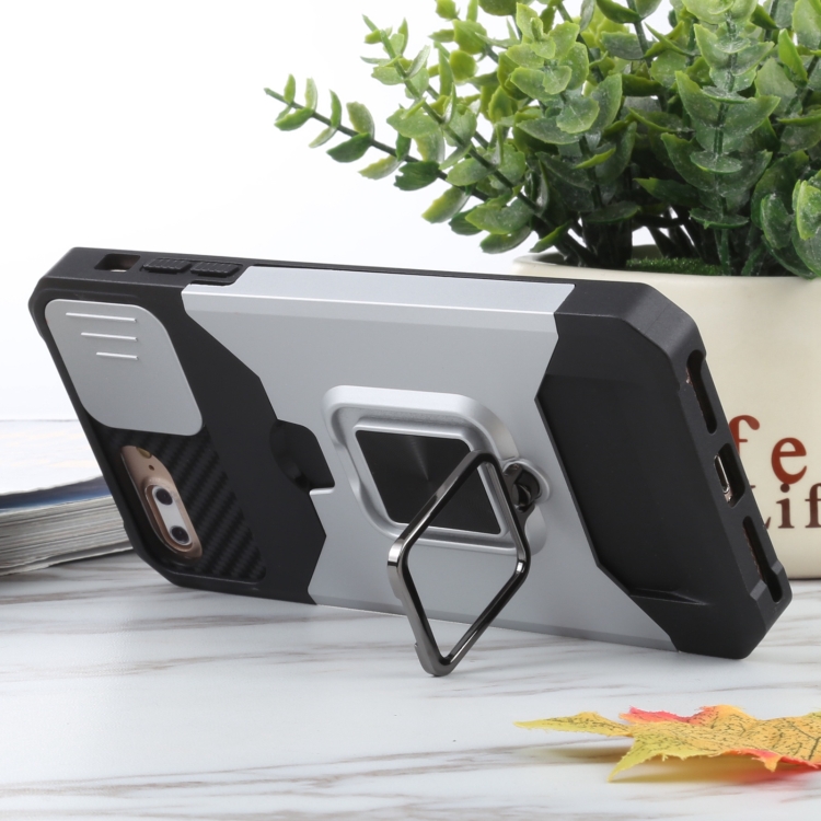Funda de Cubierta de Cámara Deslizante PC TPU para iPhone 8 Plus 7 Plus 6S Plus 6 Plus (Plata)