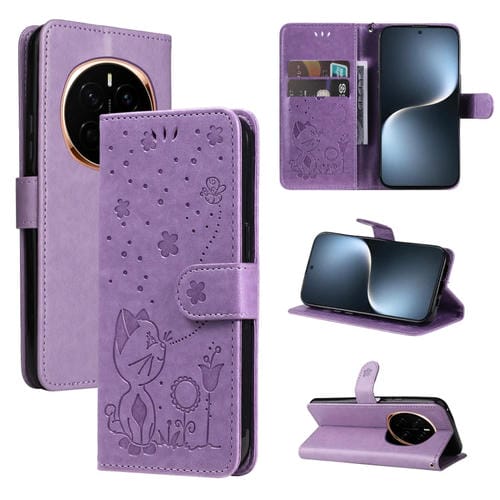 Funda de Cuero para Honor Magic7 a Prueba de Golpes con Estampado de Abeja y Gato (Morado)