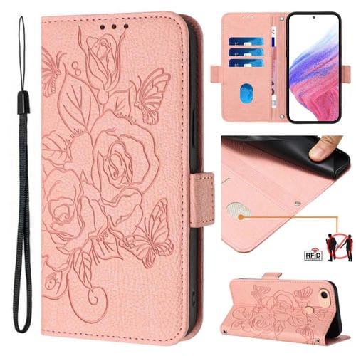 Funda de Cuero Antirrobo con Rfid para Teléfono Oppo F17/A73 2020 4G con Relieve Global (Rosa)