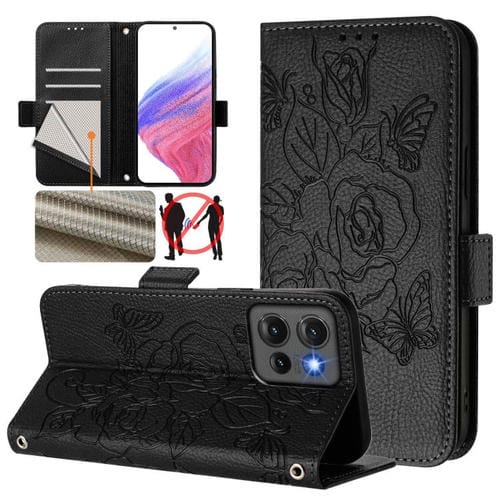 Funda de Cuero Antirrobo con RFID y Relieve para Motorola Edge 50 5G (Negra)